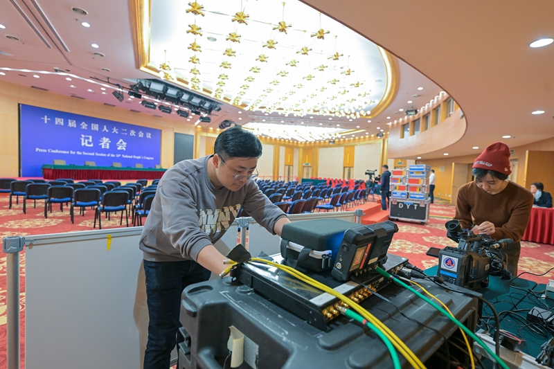 2月27日,媒体工作人员在两会新闻中心记者会现场调试线年全国两会即将召开之际w66利兰国际,设在北京西长安街北侧梅地亚中心的两会新闻中心正式启用。