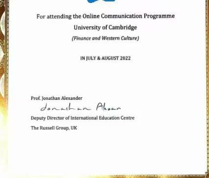 据银柿财经★,一位参与了2023年在线交流项目的同学,也收到了同款证书★。红星记者查询到,一位参与了“英国剑桥大学金融科技与科学技术2021暑期课程项目”的学生,也曾公开过自己的同款证书★。几份证书抬头、署名完全一致,仅更改了学生姓名及项目名称、时间★。